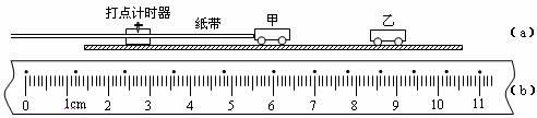 19.如图(a)所示,在水平轨道上停着甲、乙两辆实验用的小车。甲车系一穿过打点计时器的纸带。当甲车受到向右的冲量,随即启动打点计时器,计时器使用50Hz的低压电源,甲车运动一段距离后,与静止的乙车发生碰撞并连在一起运动。纸带记录下了碰前甲车和碰后两车运动情况如图(b)所示,不计轨道和空气对小车的阻力,由此可求出甲、乙两车的质量比m甲:m乙=___________。