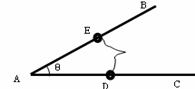 17.如图所示,两轻环E和D分别穿在光滑轻杆AB和AC上,AB和AC的夹角为θ,E和D用细线连接,一恒力F沿AC方向拉环D,当两环平衡时,细线与AB的夹角为多少?细线上的拉力为多少?