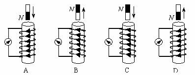 4.在验证楞次定律实验中,竖直放置的线圈固定不动,将磁铁从线圈上方插入或拔出,线圈和电流表构成的闭合回路中就会产生感应电流。下列各图中分别标出了磁铁的极性、磁铁相对线圈的运动方向以及线圈中产生的感应电流的方向等情况,其中正确的是( )