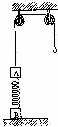 (2)现用一恒力F沿竖直方向向下拉挂钩,若物块B刚要离开地面时,物块A的速度为v,求从开始施加拉力到物块B刚要离开地面过程中,弹簧弹力对物块A所做的功;