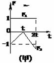 8. 原静止在光滑水平面上的物体,同时受到在同一直线上的F1、F2作用,F1、F2随时间变化的图像如图甲所示,则v-t图像是图乙中的: