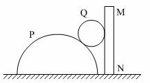 10.半圆柱体P放在粗糙的水平面上,其右端有固定放置的竖直木板MN,在半圆柱P和MN之间放有一个光滑均匀的小圆柱体Q,整个装置处于静止,如图所示是这个装置的纵截面图,若用外力使MN保持竖直并且缓慢地向右移动,发现P点始终保持静止。在此过程中,下列说法正确的是 ( )