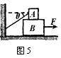 7.如图5所示,在光滑的水平面上放一物体B,B的上方再放一物体A,A的左端系一与水平方向成θ角的绳,绳的另一端系在墙上.若给B施一逐渐增大的水平力F,但A和B仍保持静止.则A对B的压力将: ( )