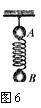 8.两个小球A和B,中间用轻弹簧连着,并用细绳悬于天花板下,如图6所示,下述四对力中属于作用力和反作用力的是: ( )