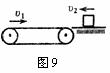 12.如图9,一个水平方向足够长的传送带以恒定的速度V1沿顺时针方向运动,传送带右端有一与传送带等高的光滑水平面,一物体以恒定的速率V2沿直线向左滑上传送带后,经过一段时间后,又返回光滑水平面上,速率为V2/下列说法中正确的是:( )