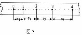 11.(5分)用接在50Hz交流低压电源上的打点计时器,测定小车作匀加速直线运动的加速度。某次实验中得到的一条纸带如图7,从比较清晰的点起,每五个打印点取一个点作为计数点,分别标明0、1、2、3、4。量得0与1两点间距离s1=30mm,3与4两点间距离s4=48mm,则小车在0与1两点运动时的平均速度为_______m/s。小车的加速度为_______m/s2。