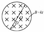 17.如下图所示,在直径为D、电阻为R的细金属丝圆环区域内有一垂直于该圆环的变化磁场,其磁场的变化规律为