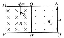 18.如下图所示,在直线MN与PQ之间有两个匀强磁场区域,两磁场的磁感应强度分别为B1、B2,方向均与纸面垂直,两磁场的分界线