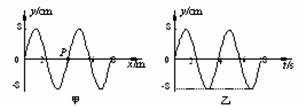 6.在某介质中传播的一列简谐横波在t=0时刻的图象如图甲所示,下图中乙是这列波在x=4m处质点P从该时刻起的振动图线,则下列判断中正确的是 ( )