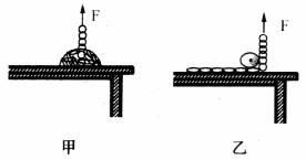 (2)如果在桌面上安装一个无摩擦的定滑轮,让链条绕过滑轮,且开始时链条处于拉紧状态,如上图乙所示。在一端施一竖直向上的恒力F,求在链条另一端离开桌面时,链条的动能。你认为上述解答是否正确?若不同意该同学的解答,请说出你的理由。
