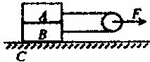 9.如下图所示,A、B为相同的两个木块,叠放在水平地面C上,A、B用水平轻绳通过一个滑轮接在一起,在滑轮上作用一个水平力F,恰使A、B两个木块一起沿水平面向右匀速运动。不计轻绳和滑轮的质量以及滑轮轴的摩擦。关于A与B间的摩擦力F1和B与C间的摩擦力F2的大小,有 ( )