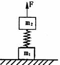 15.(8分)如图所示,质量为m1的物体放置在水平面上,用劲度系数为k的轻弹簧把m1和m2连接,现用竖直向上的力F缓慢提起m2,当m1与水平面间的作用力为零时,撤去拉力F,求从撤去F到m2速度达最大的过程中,m2通过的位移。
