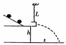 13.利用如下图所示的方法测定细线的抗拉强度,在长为L的细线下端挂已知质量不计的小盒,小盒的左侧开一孔,一个金属小球从斜轨道上释放后,水平进入小盒内,与小盒一起向右摆动,现逐渐提高金属小球在轨道上释放的高度,直至摆动时细线恰好被拉断,,并测得此时金属小球平抛运动的竖直位移h和水平位移s,若小球质量为m,该细线的抗拉张力为 。