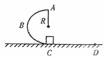 15.如下图所示,一固定在竖直平面内的光滑的半圆形轨道ABC,其半径R=0.5m,轨道在C处与水平地面相切,在C处放一小物块,给它一水平向左的初速度v0=5m/s,结果他沿CBA运动,通过A点,最后落在水平地面上的D点,求C、D的距离s(取重力加速度g=10m/s2)