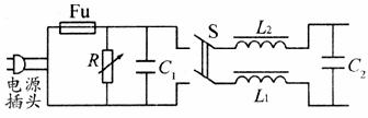 5.在彩色电视机的电源输入端装有电源滤波器,其电路如下图所示。主要元件是两个电感线圈L1、L2,它们的自感系数很大,Fu是熔丝,R是压敏电阻(正常情况下阻值很大,但电压超过设定值时,阻值会迅速变小,可以保护与其并联的元件),C1、C2是电容器,S为电视机开关。某一次用户没有先关电视(没断开S)就拔掉电源插头,结果烧坏了图中电路元件,可能被烧坏的元件是