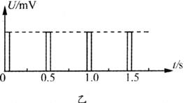 8.利用光敏电阻制作的光传感器,记录了传递带上工件的输送情况。如下图甲所示为某工厂成品包装车间的光传感记录器,光传感器B能接收到发光元件A发出的光,每当工件挡住A发出的光时,光传感器就输出一个电信号,并在屏幕上显示出电信号与时间的关系,如图乙所示。若传送带始终匀速运动,每两个工件间的距离为0.1m,则下述说法正确的是