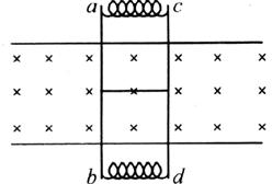 与导轨构成矩形回路。导体棒的两端连接着处于压缩状态的两根轻质弹簧,两棒的中间用细线绑住,它们的电阻均为R,回路上其余部分的电阻不计。在导轨平面内两轨道间有一竖直向下的匀强磁场,开始时,导体棒处于静止状态,剪断细线后,导体棒在运动过程中