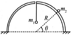 14.如下图所示,半径为R的半球支撑面顶部有一小孔,质量分别为