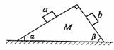 1.如图所示,一质量为M的楔形木块放在水平桌面上,它的顶角为90°,两底角为α和β;a、b为两个位于斜面上质量均为m的小木块.如果a、b沿斜面匀速下滑,而楔形木块静止不动,那么这时楔形木块对水平桌面的压力等于 ( )