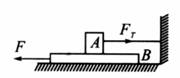 2、如图所示,一木板B放在水平面上,木块A放在B的上面,A的右端通过一不可伸长的轻绳固定在直立墙壁上,用力F向左拉动B,使它以速度v做匀速运动,这时绳的张力为FT,下面说法正确的是 ( )
