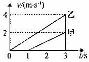 10.甲、乙两质点在同一直线上同向做匀加速直线运动的v-t图象如图所示,在3s末两质点在途中相遇,则 ( )