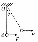 14.(6分)如下图所示,一根轻绳上端固定在O点,下端栓一个重为G的钢球A,球处于静止状态。现对球施加一个方向向右的外力F,使球缓慢偏移,在移动中的每一刻,都可以认为球处于平衡状态。如果外力F方向始终水平。最大值为2G,求:轻绳OA张力T的大小取值范围。
