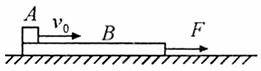 16.(15分)如图所示,可看作质点的物体A的质量m1=2kg,静止在光滑水平面上的木板B的质量为m2=1kg,木板长L=1m,某时刻A以v0=4m/s的初速滑上木板B的上表面为使A不能从B上滑落,则在A滑上B的同时,给B施加一个水平向右的恒力F,若A与B之间的动摩擦因数μ=0.2,g取10m/s2,试求拉力F的最小值。