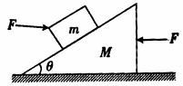 5. 如图所示,质量为m的木块放在质量为M的三角形斜劈上,现用大小均为F,方向相反的水平推力分别推木块和斜劈,它们均静止不动,则