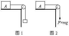 13.质量为M的物体A放在光滑水平桌面上,用一根细绳系住物体,若在绳的另一端挂一质量为m的物体时,A的加速度为a1,如图1所示;若在绳的另一端用大小为mg的力F拉物体A时,A的加速度为a2,如图2所示。则 ( )