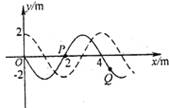 15.如图所示,一列横波在t1和t2两时刻的波形分别如图中的实线和虚线所示,已知波在介质中的传播速度是2m/s。下述结论正确的是 ( )