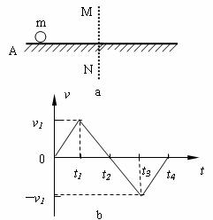 10.质量为m的小球放在光滑水平面上,在竖直线MN的左方受到水平恒力F1作用(m可视为质点),在MN的右方除受F1外还受到与F1在同一条直线上的水平恒力F2作用,现设小球由A点静止开始运动如图a所示,小球运动的v-t图象如图b所示:由图可知下列说法正确的是