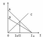 6.如图所示,直线A为电源a的路端电压与电流的关系图象,直线B为电源b的路端电压与电流关系图象,直线C为一个电阻R的两端电压与电流的关系图象,将这个电阻R分别接到a、b两个电源上,由图可知两次相比 ( )