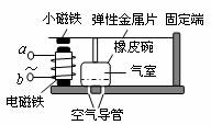 8.如图所示为一种利用电磁原理制作的充气泵的结构示意图,其工作原理类似打点计时器。当电流从电磁铁的接线柱a流入,吸引小磁铁向下运动时,以下选项中正确的是( )