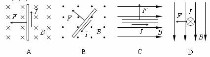 9.如图所示的匀强磁场中,已经标出了电流I和磁场B以及磁场对电流作用力F三者的方向,其中不正确的是 ( )![]()
