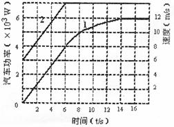 15.(12分)汽车在平直的公路上由静止启动,开始做直线运动,图中曲线l表示汽车运动的速度和时间的关系,折线2表示汽车的功率和时间的关系。设汽车在运动过程中阻力不变,在16s末汽车的进度恰好达到最大。