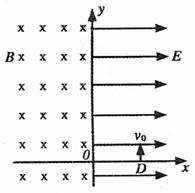 25.(18分)如图,在x>0的空间中,存在沿x轴方向的匀强电场。电场强度E=10N/C;在x<0的空间中,存在垂直xy平面方向的匀强磁场.磁感应强度B=0.5T。一带负电的粒子(比荷q/m=160C/kg),在x=0.06m处的D点以v0=8m/s的初速度沿y轴正方向开始运动,不计带电粒子的重力。求