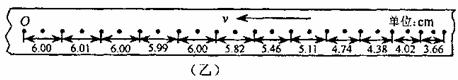 上述过程中,打点计时器在纸带上打下的点迹如图(乙)所示,下方数据表示从纸带上 某点O开始每三个点间的距离.