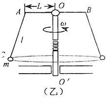 如图(乙)所示,AB为与竖直转轴OO′固定的水平横粱,长度为2L。AC是悬挂飞椅的绳索,飞椅拴在绳索的末端C处,设施静止时,绳索AC竖直。游戏开始时.人乘座在飞椅中,闭合电源开关,电机带动OO′轴开始转动.飞椅在绳的牵引下开始加速。随着转速的增加,飞椅(连同人)的高度逐渐上升,与OO′的距离逐渐增大,当设施转动稳定后,飞椅(连同人)在水平面内做匀速圆周运动.已知L=8m,AC长l=10m,飞椅(连同人,可视为质点)的总质量为m=100kg,设施稳定转动时绳索AC的拉力为1250N,不考虑绳索质量和空气阻力,取g=10m/s2,求: