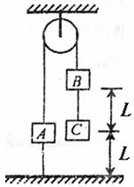 20.(14分)如图所示,物块A的质量为M,物块B、C的质量都是m,并都可看作质点,且m<M<2m,三物块用细线通过滑轮连接,物块B与物块C的距离和物块C到地面的距离都是L,现将物块A下方的细线剪断。若物块A距滑轮足够远且不计空气及摩擦阻力,求: