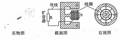 23.(15分)如图所示,是一种“动圈式话筒”的实物图、截面图和右视图,它的工作原理是话筒最前端有一层弹性膜片(图中未画出),在弹性膜片后面黏结一个较小的金属线圈,线圈处于永磁体的磁场中(磁感线沿半径辐向分布),当声波使弹性膜片前后振动时,弹性膜片会带动金属线圈切割磁感线,将声音信号转变为电信号,电信号经扩音器放大后送到扬声器,扬声器便发出放大了的声音。