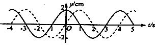 19.一列横波在x轴上传播,在x=0与x=1㎝的两点的振动图线分别如图中实线和虚线所示。由此可以得出 ( )