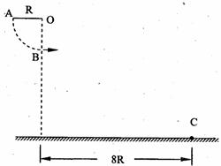,秋千的质量不计,秋千的摆长为R,男演员落地点C与O点的水平距离为8R。求