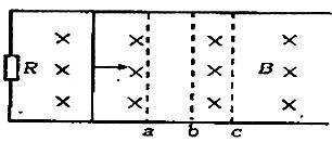 8.如图所示,水平光滑的平行金属导轨,左端与电阻R相连接,匀强磁场B竖直向下分布在导轨所在的空间内,质量一定的金属棒在垂直导轨的方向上搁在导轨上。今使棒以一定的初速度向右运动,到位置c时棒刚好静止。设导轨与棒的电阻均不计,a、b与b、c的间距相等,则金属棒在 由a→b和由b→c的两个过程中,下列判断正确的是( )