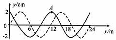 20.一列简谐横波原来波形如图实线所示,经过时间t后变成图中虚线所示的波形。已知波向左传播,时间t小于1个周期,图中坐标为(12,2)的A点,经时间t后振动状态传播到B点,则( )