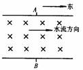 (2) (3分)如图所示为北半球一条自西向东的河流,河两岸沿南北方向的A、B两点相距为D.若测出河水流速为v,A、B两点的电势差为U,即能测出此地的磁感应强度的垂直分量B⊥.= .