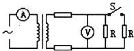 8.如下图中变压器原线圈接交流高压,降压后通过输电线给用电器供电,当电键S断开时图中两电表示数电压