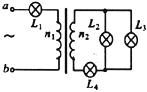 9.如下图所示为理想变压器,三个灯泡L1、L2、L3都标有“5V,5W”,L4标有“5V,10W”,若它们都能正常发光,则变压器原、副线圈匝数比