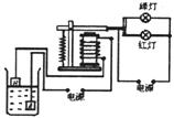 14.如上图所示为自动水位报警器的示意图,在水位低于B时,电磁铁所在的控制电路部分断路,_________灯亮;当水位升高到B时,电磁铁所在的控制电路部分接通,_________灯亮。