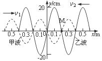 B.由图示时刻开始,再经过1/4甲波周期,M将位于波峰