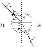 15.如图所示,某同学用插针法测定一半圆形玻璃砖的折射率。在平铺的白纸上垂直纸面插大头针P1、P2确定入射光线,并让入射光线过圆心O,在玻璃砖(图中实线部分)另一侧垂直纸面插大头针P3,使P3挡住P1、P2的像,连接O P3.图中MN为分界面,虚线半圆与玻璃砖对称,B、C分别是入射光线、折射光线与圆的交点,AB、CD均垂直于法线并分别交法线于A、D点。设AB的长度为l1,AO的长度为l2,CD的长度为l3,DO的长度为l4,为较方便地表示出玻璃砖的折射率,需用刻度尺测量 (用上述所给物理量的字母表示),则玻璃砖的折射率可表示为 。